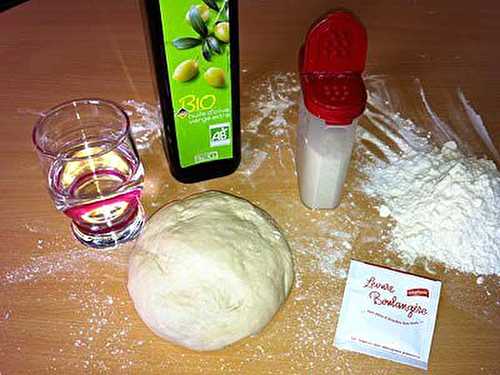 Ingrédients : pour une pizza de 25 x 18 cm 150 g d’eau tiède ½ sachet de levure de boulanger déshydratée (2,5 g) 150 g de farine type 45 ½ cuillerée à café de sel fin ½ cuillerée à café de sucre en poudre 1 cuillerée à soupe d’huile d’olive Préparation.