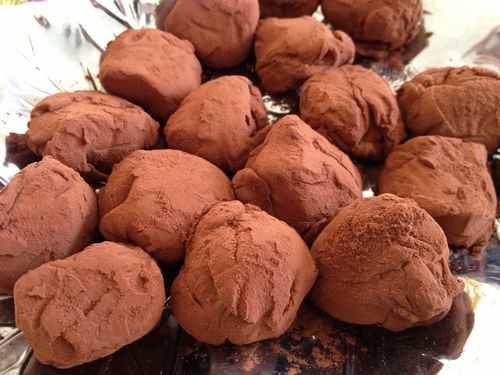 Attention on y devient vite accros : ) Pour une dizaine de truffes Ingrédients: - 125g de chocolat noir - 75ml de crème - 2 cas de cointreau - 15g de beurre - 1/2 tasse de copeaux de chocolat au lait 1) Mettre le chocolat et la crème dans un poêlon et.