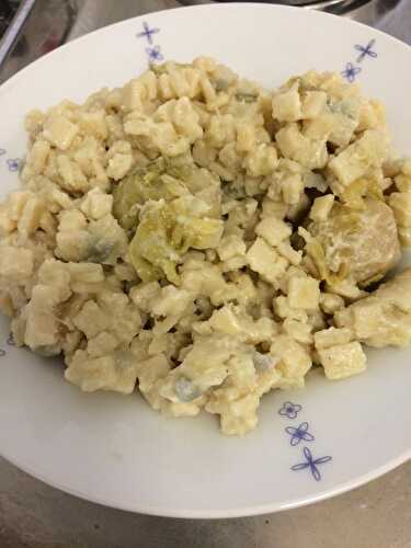 Premier essai de crozets , spécialité de savoie, ceux sont des pâtes au sarrasin coupés en petit carré ingrédients pour 4.