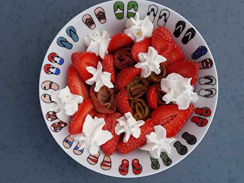 Je ne fais pas beaucoup de desserts en ce moment, je suis à fond dans ma période fraises et ce sont elles que je propose en desserts avec une bonne chantilly maison.