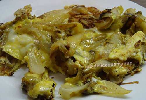 Ce soir là je navais pas trop envie de cuisiner et comme je préparai une omelette aux pommes de terre pour mon chéri, j'ai eu l'envie de manger une également, mais plus allégée que la sienne, d'où l'idée des endives que j'adore :-) Pour ne pas gâcher.