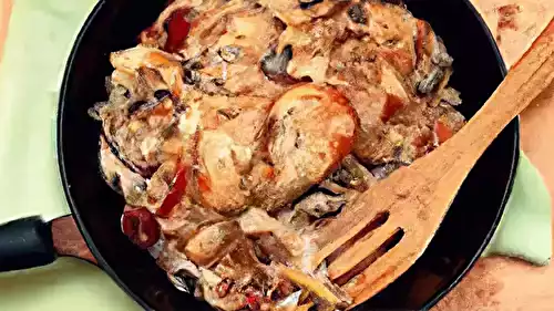 Cette recette poulet champignons, bacon et sirop d'érable, le tout cuisiné dans une sauce crémeuse et sucrée au lait de coco et sirop