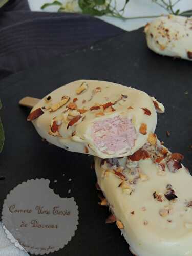 Esquimaux rhubarbe framboise & chocolat blanc ~ Rhubarb & raspberry white chocolate popsicles