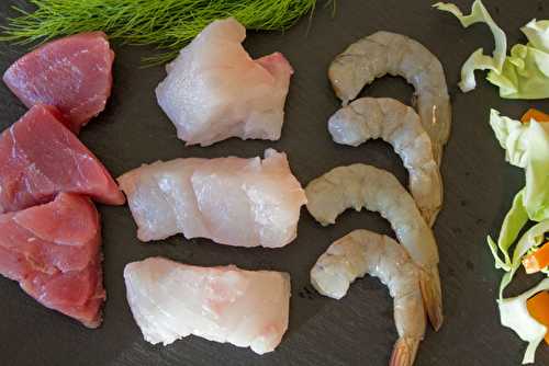Voici une recette toute personnelle de fondue avec du poisson blanc, du thon rouge et des crevettes pochés dans un bouillon façon thaï, parfumé aux épices et au lait de coco.