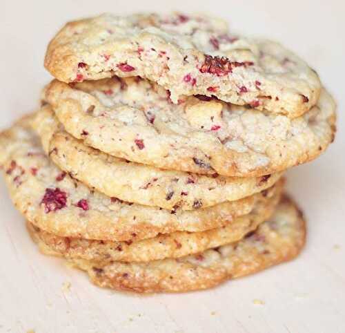 Des cookies façon US ultra moelleux, avec des pépites de framboise et chocolat blanc.