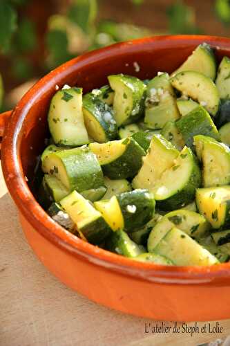 Faire cuire 6 petites courgettes à la vapeur (15 minutes) Laisser refroidir puis coupez-les en petits morceaux.