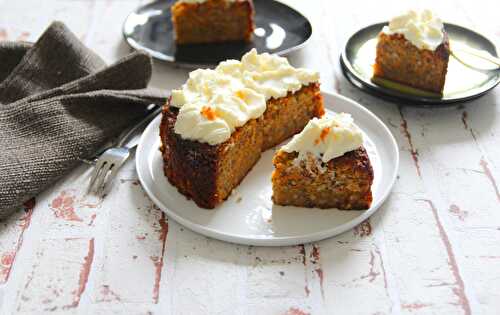 Ingrédients pour 6 personnes : 5 carottes 3 œufs 100 g de beurre 100 g de sucre cassonade 60 g de farine 1 sachet de levure chimique 1 pincée de sel 100 g d’amandes en poudre 50 g de noix de pécan hachées Pour le nappage : 250 g de mascarpone 60…