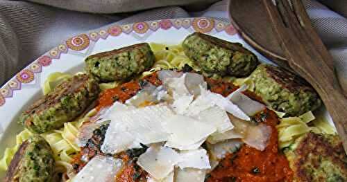 Ces petits carrés de pâte à nouille sont garnis d'une farce à la viande, au fromage ou aux épinards et servis avec de la sauce tomate.