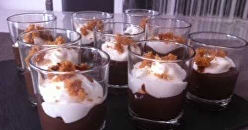 Crème chocolat et mascarpone, miettes de pain d'épices J'ai pris la recette de la crème chocolat sur Marmiton http://www.