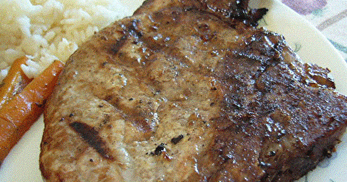 Une côtelette des plus savoureuses! À peine sucrée la sauce est excellente! De peur que ça soit trop épicé j'ai diminué un peu la poudre d.