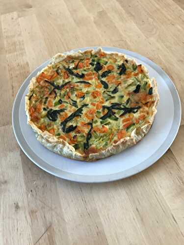 Pour 8 parts - Moule de 25 cm de diamètre Pate brisée: 200g de farine/100g de beurre/100 ml d'eau Crème au citron: 4 citrons bio 3 CS de maizena 100g de sucre 150ml de jus de citron zeste de 3 citrons bio 300ml d'eau froide 3 jaunes d'oeufs 55g de beurre.