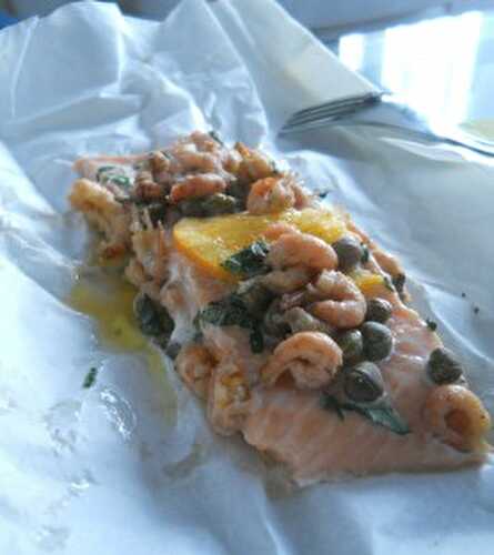 Belge Attitude – Papillote de saumon à l’orange et aux crevettes grises