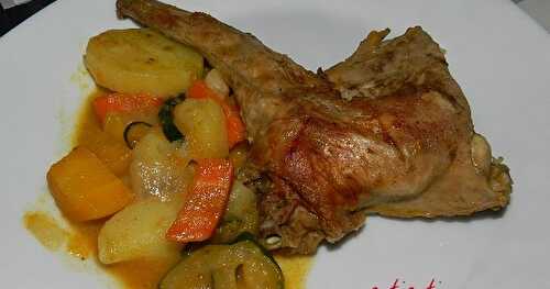 Caille sauce champignons-petits oignons blancs accompagnée d'aubergine farcie