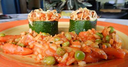 Courgettes farcies aux 3 poivrons-courgette et lard petit déjeuner