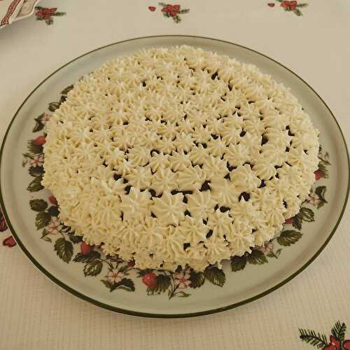 Gâteau d'anniversaire au chocolat avec un décor de crème chantilly.