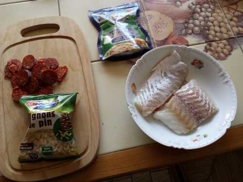 Dos de cabillaud en crumble de chorizo et parmesan