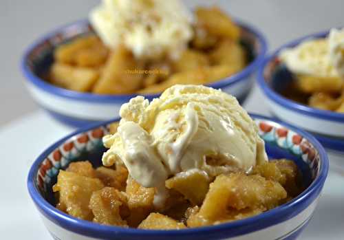 2 grosses pommes 30 g de beurre 2 càs de sucre complet muscovado Peler les pommes et les couper en dés.