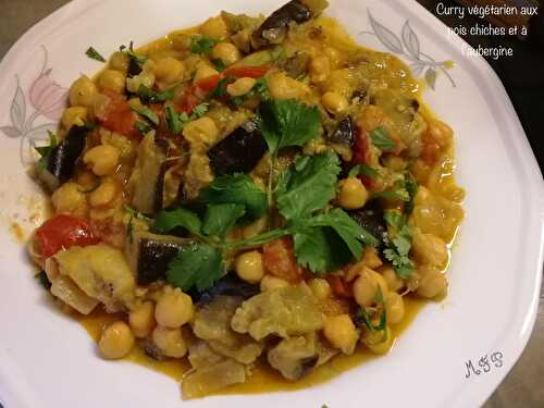 Pois chiches, aubergine, tomates, oignon, ail, curry, lait de coco .