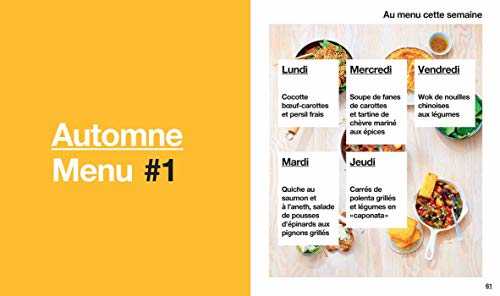 Tendance Batch cooking!Pour chaque semaine retrouvez:Le panier avec des produits de saisonLa liste des courses et les menus de la semaineLe déroulé des préparations à réaliser en 1HUne cuisine zéro gaspi- 16 menus hebdomadaires complets, soit 80 repas pour vos enfants- Des plats qui privilégient les produits frais et de saison- Une cuisine 0 Déchet où tout est consommé et les restes réutilisés
