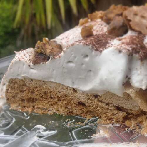 Recette d'une meringue à la crème montée au café, comme une pavlova, avec des noisettes caramélisées