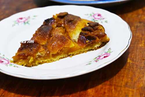 Tarte à l'ananas sans pâte Merci à mon ami Olivier alias @songefeu sur Instagram, pour sa recette des tartelettes à l'ananas, sauf que j'en ai fait une tarte ; Et comme je n'avais pas assez d'ananas j'y ai rajouté des oreillons d'abricots.