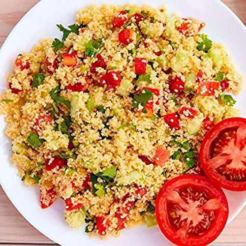 Découvrez ma recette de taboulé maison à la semoule avec des légumes d'été et des herbes fraîches, délicieuse, inratable et sans cuisson !