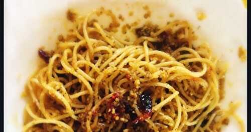 Une recette de Pâtes au pesto rouge de poivrons et huile de pignons de pin