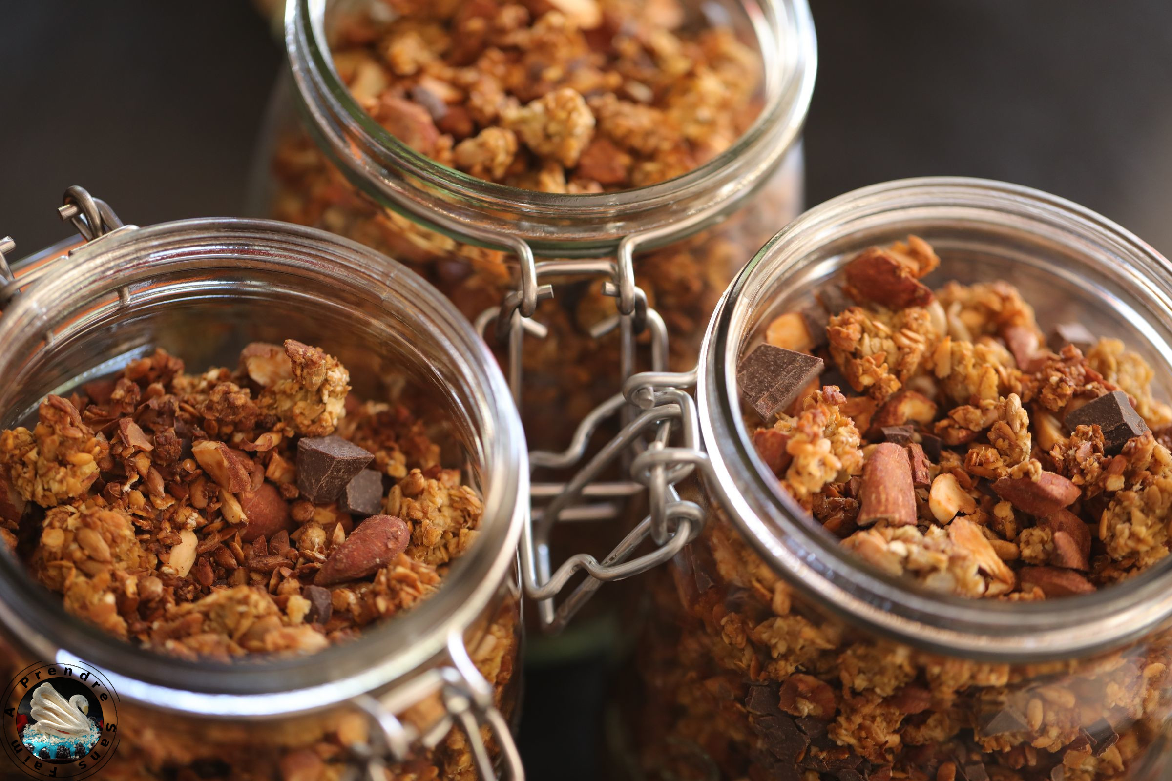 Un muesli maison croustillant et léger, sans sucre, à préparer à l’avance dans un joli bocal !