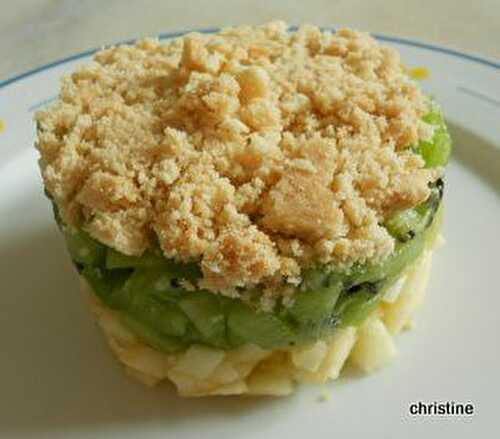 L’alliance du croustillant du crumble et de l’acidulé du kiwi, mêlé à la pomme et la poire ravira tous les gourmands.