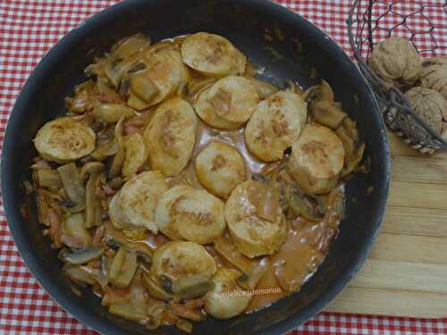 Boudin blanc aux champignons et crème tomatée Je n'avais encore jamais cuisiné de boudin blanc, je me contentais de proposer des minis boudins chauds à l'apéritif.