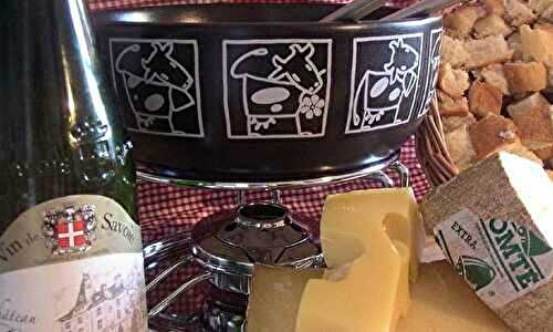 Ingrédients pour 4 personnes : 300 g par personne: Mélange de 3 Fromages : Comté , Beaufort , Appenzeller 1 gousse d'ail 1/2 cuiller à café de fécule de pomme de terre (Maïzena) 1 litre de vin blanc (Apremont ou chardonnay de Savoie) poivre mu.