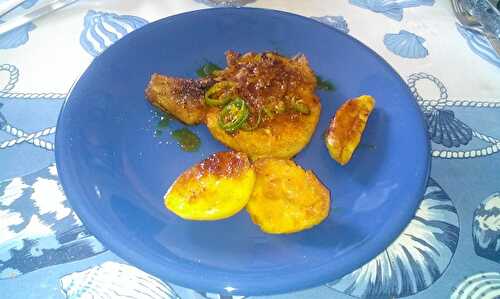 Du pep's dans cette recette ! COTES DE PORC AUX VINAIGRE ET MOUTARDE AU CITRON DE MENTON Pour 4 personnes Préparation : 15 mn .