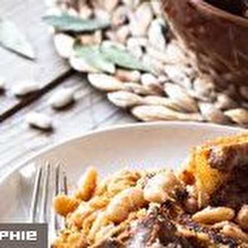 J'ai utilisé ma recette de la fricassée de mogettes pour réaliser ma version du cassoulet ; les mogettes sont plus faciles à cuisiner que les haricots blancs car elles ne nécessitent pas de trempage durant 24 heures.