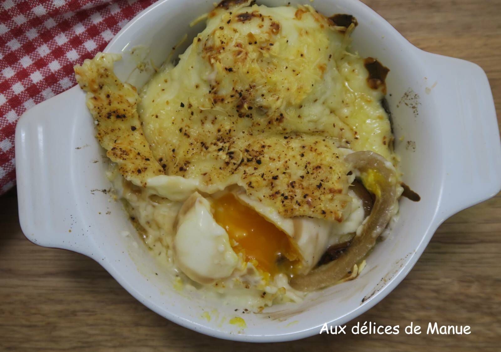 Oeuf mollet à la florentine Pour 4 personnes 800 g d'épinards frais 3 gousses d'ail 30 g de beurre 2 cas d'huile d'olive sel et poivre 4 oeufs 1/4 litre de sauce béchamel pas trop épaisse (recettes de base) Fromage râpé Quelques mouillettes Equeuter.