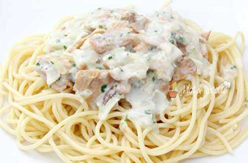 Pâtes à la sauce au fromage et au thon WW, recette un savoureux plat léger à base de pâtes nappées d'une sauce légère et crémeuse au thon
