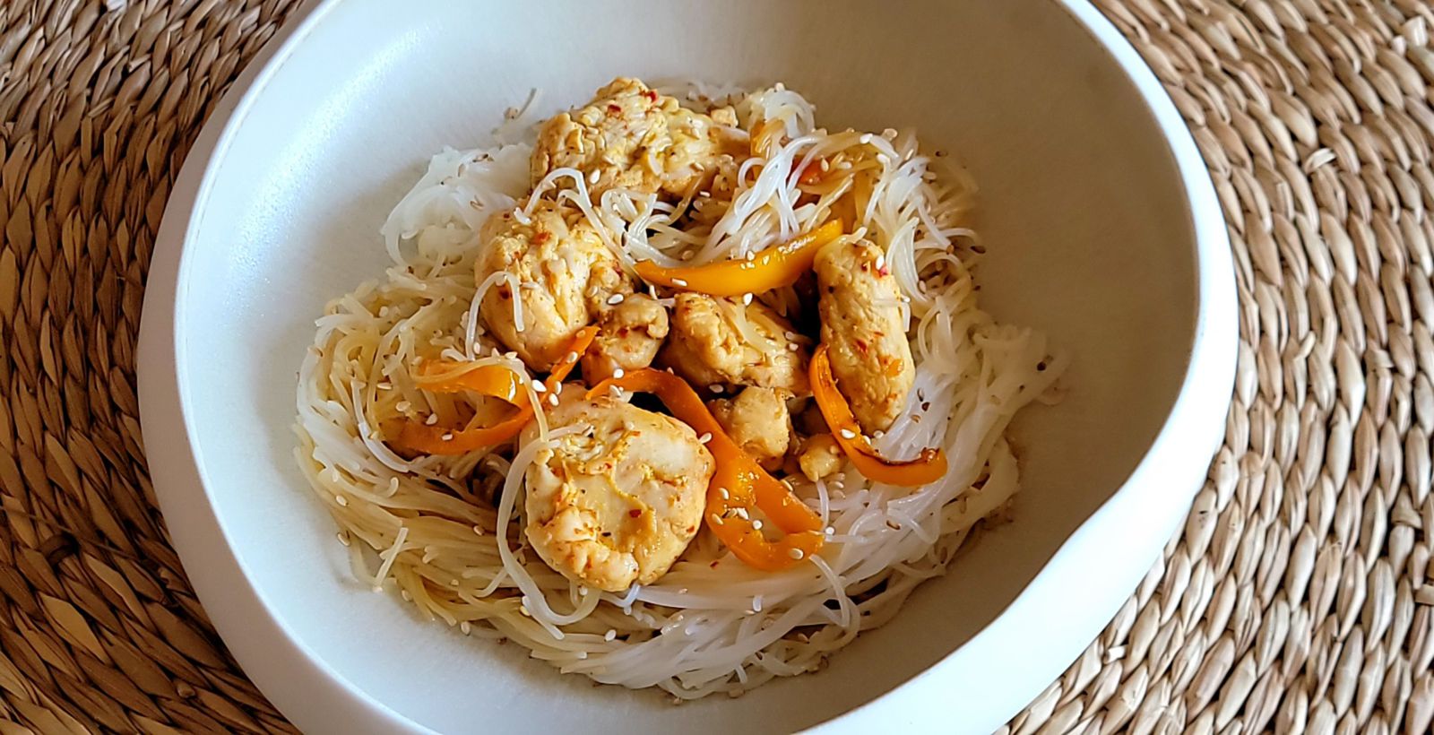 Vermicelles de riz aux poivrons sautés au wok Une recette simple et rapide.