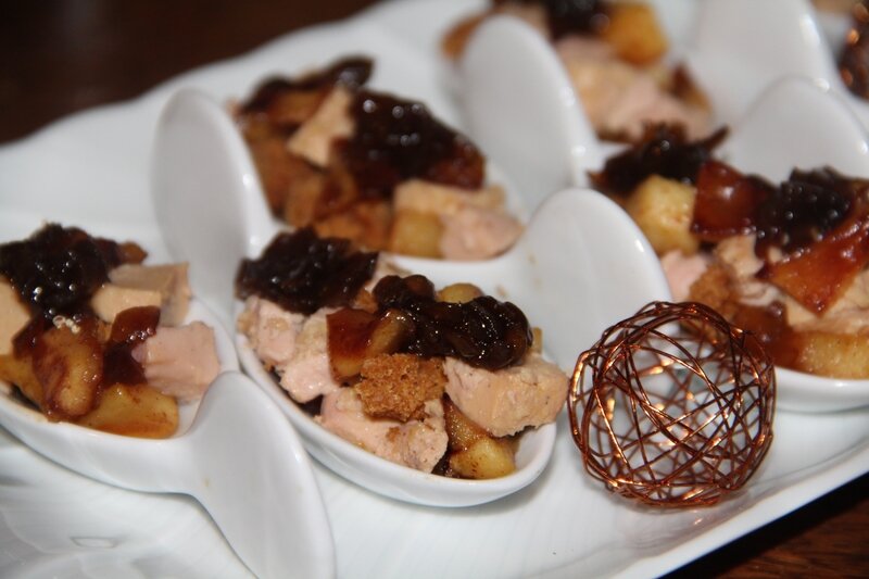 Une petite impro pour un apéro entre amis, ce jour là nous recevions alors j'ai revu cette recette mais cette fois en verrines! Les verrines se sont rapidement vidées! De plus j'ai pu à nouveau utiliser le pain d'épices offert par mon généreux partenaire.