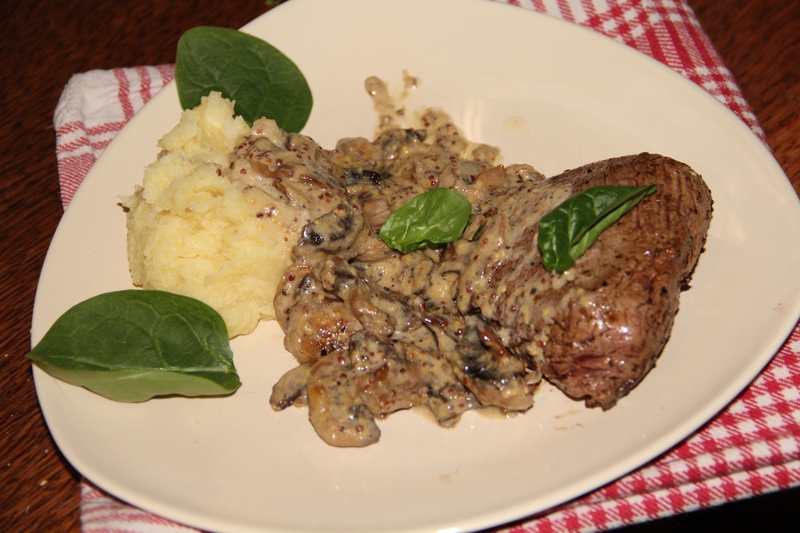 Recette N°816 Ingrédients pour 6 à 8 personnes : 2 filets mignons 50 g de beurre 2 échalotes 15 cl de vin blanc sec 40 cl de crème fraîche liquide 2 cuillères à soupe de moutarde forte 1 cuillère à soupe de graine de moutarde (facultatif) Sel et poivre.