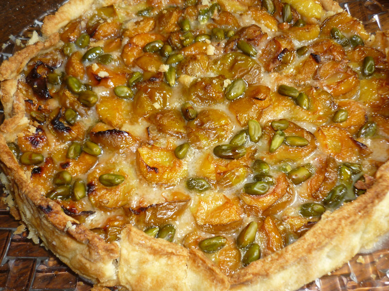 Les premières de l'année sur notre prunier ! Une bonne tarte pour fêter çà ! TARTE AUX REINE-CLAUDE ET QUELQUES PISTACHES SUR LIT DE.