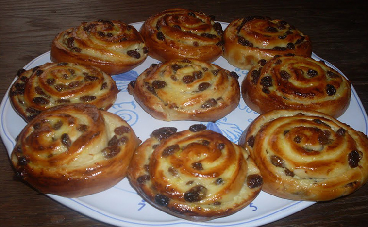Pour ce week-end, commencez votre journée en douceur avec des pains aux raisins faits maison, débordant de crème pâtissière à la vanille et de raisins secs.