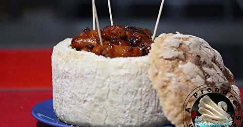 Saucisses marinées en pain surprise Une recette simple et rapide aux accents asiatiques idéale pour ne pas gâcher la croûte du pain surprise lorsqu'elle est vidée de ses sandwichs.