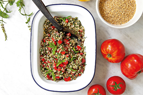 A préparer facilement avec un mélange de quinoa et boulgour aux épices tandoori, ce taboulé indien végétarien aux tomates et concombres est très parfumé.