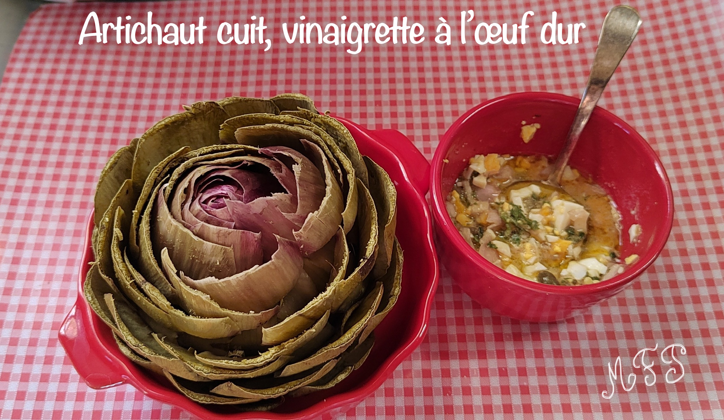 Pour 2 personnesTemps de préparation : 10 minutes Temps de cuisson : 40 à 45 minutes Niveau de difficulté: Très facile Ingrédients1 artichaut par personne Pour la sauce vinaigrette : 5 cuillères à soupe d'huile d'olive, 2 cuillères à soupe de vinaigre.