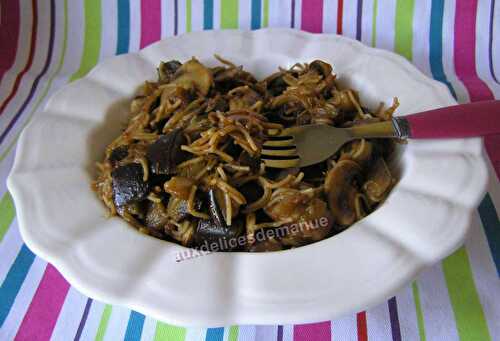 Pâtes à l'aubergine Avec le retour des beaux jours, et surtout des étals qui se garnissent de plus en plus de tous ces légumes qui ravissent nos papilles, j'ai eu l'envie de cuisiner un plat de pâtes, mais pas que !! Je voulais y ajouter un légumes,.