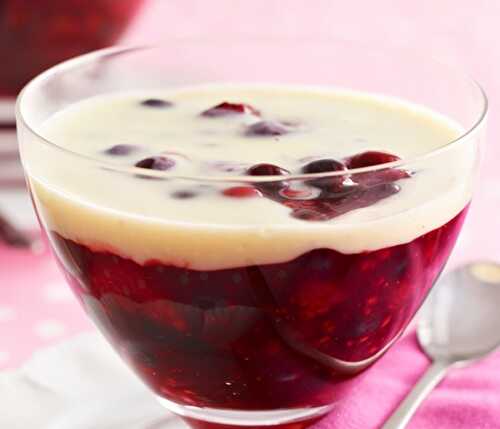 Le Rote Grütze est une spécialité d'Allemagne du nord, un dessert allemand à base de soupe de fruits rouges et de crème anglaise à la vanille.