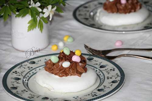 Une chantilly sur un fond de meringues craquantes en forme de nid de Pâques, un goûter parfait pour Pâques