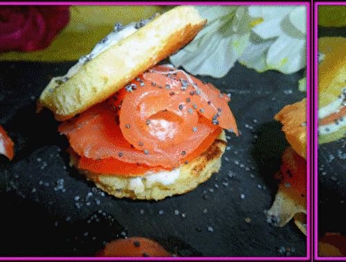 *Pour 6 mises en bouches Ingrédients: 1 Petite boite de rillettes de saumon 50 g d’oeufs de saumon 1 branche d’aneth Recette: Déposer dans chaque petit plat un peu de rillettes Ajouter des oeufs et un brin d’aneth Servir frais *On peut changer de rillette.
