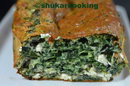 Aujourd'hui je vous propose un plat grec appelé Spanakopita réalisé avec des feuilles de bricks garnies d'épinards et de féta.