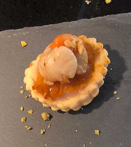 Source: J'adore les bûches et autres desserts de Noël Pour 4 tartelettes Ingrédients: - 2 rouleaux de pâte brisée - 4 petites pommes - 1 cas de dés d'orange confites - 1 noisette de beurre - 4 cas de miel - 1 cas de sucre - 2 cas de raisins secs - 2.