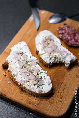 Une autre tartine servie à l'apéro, réalisée avec ce que j'avais! Une petite tartine gourmande, bien fraîche et réalisée en 5 minutes, montre en main! Mon mari a vraiment bien aimé celle-ci! Moi j'ai bien aimé les deux (celle d'hier) J'en profite pour.